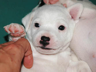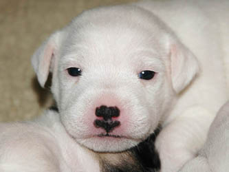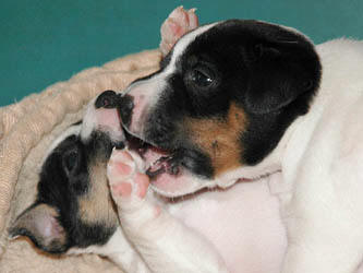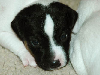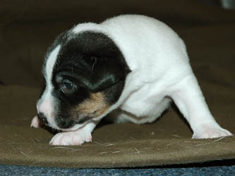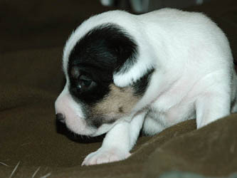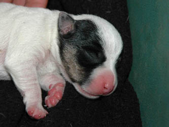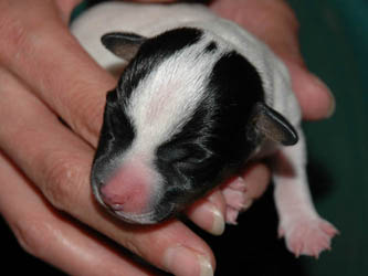 1 Hündin. Der Erstgeborene ist von den Abzeichen her beinahe ein
