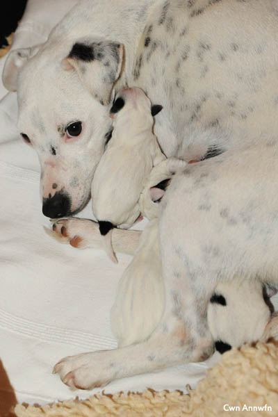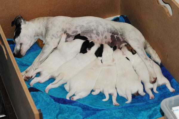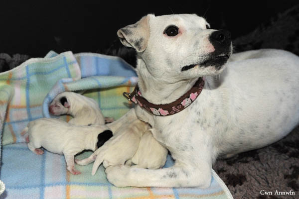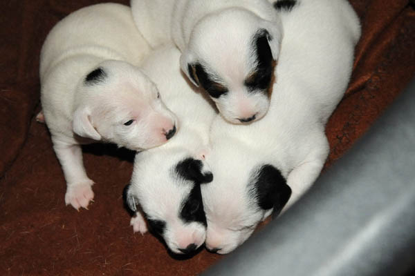 Gestern war´s soweit: am 61. Tag (wenn ich mich nicht verrechnet habe) hat Britannia ihre Welpen bekommen. Es sind 4 stramme Terrier in schwarz/weiß geworden, 3 Rüden und 1 Hündin. Näheres zum Wurf Snow Wolf´s True Grit x Cwn Annwfn Britannia finden Sie auf der Züchter-Website. So alles gut läuft, wird Anfang 2012 hoffentlich einer der Kleinen auch nach Österreich kommen.