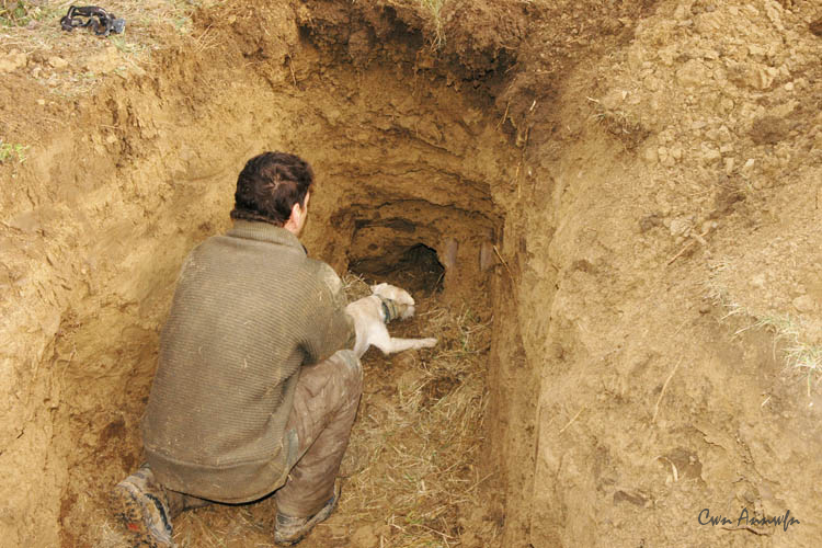 Fotos von der Bezirksbaujagd Gänserndorf, bei der ein Fuchs erfolgreich gegraben werden konnte weil Nova ihn in einer Endröhre fixiert hat. Gesamtstrecke (Beteiligung von rund 70 Revieren) 51 Füchse, 4 Dachse und 2 Marder