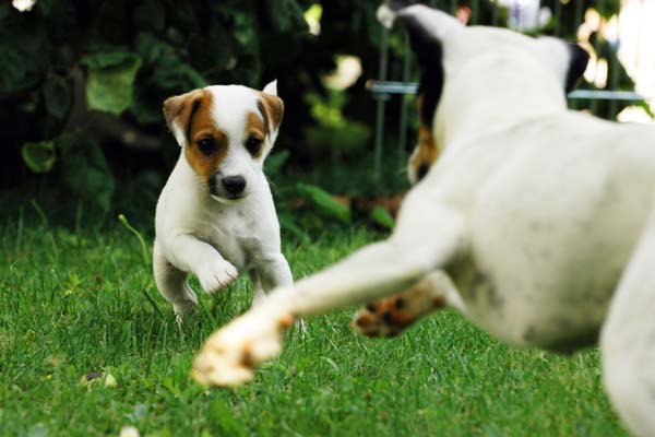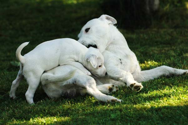 Morgen geht´s zum Ultraschall. Noch kann man nicht einmal mit viel Fantasie einen merklichen Bauch erkennen, obwohl Tica (rückblickend betrachtet) schon lang instinktiv weiß, was los ist. So beschränkt sie sich darauf, das wilde Spiel der Youngsters zu beaufsichtigen. |