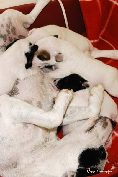 Wie sein Bruder fällt auch er bislang nicht besonders auf, trinken - schlafen - trinken - schlafen usw. Ein ganz normaler Welpentagesablauf eben:) |