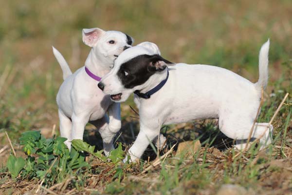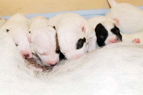 jeweils 2 schwarz-weiß und braun-weiß, 2 Hündinnen sind ebenfalls