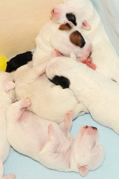 lagen schon 6 Welpen in der Wurfkiste. Der 6., die kleinste Hündin
