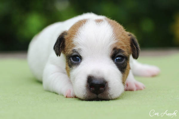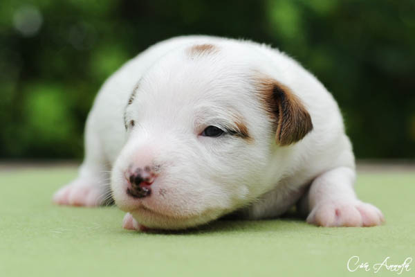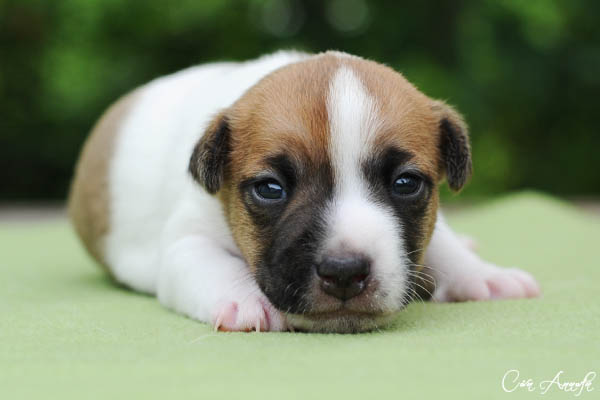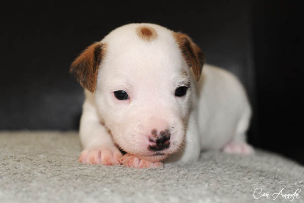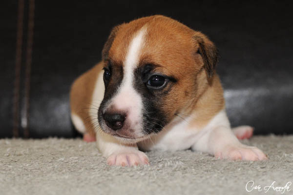 Wie die Zeit vergeht... die 4 sind jetzt richtige kleine Möchtegernterrier - aufgeweckt, immer gut drauf, für jeden Spaß zu haben. Letzten Donnerstag stand die Audiometrie am Plan, wie erwartet war bei allen alles ok und das Chipen haben wir bei der Gelegenheit auch gleich hinter uns gebracht. Ein Fixtermin steht jetzt noch am Plan, nämlich die erste Impfung samt Wurfbesichtigung für die, von denen wir uns als erste verabschieden müssen. Sie sind jetzt bald soweit, dass sie in die große Welt hinausziehen können. Der gemütliche Ferdinand wird uns rund ums kommende Wochenende als erster verlassen, der nächste ist dann Wirbelwind Finegas eine Woche später.